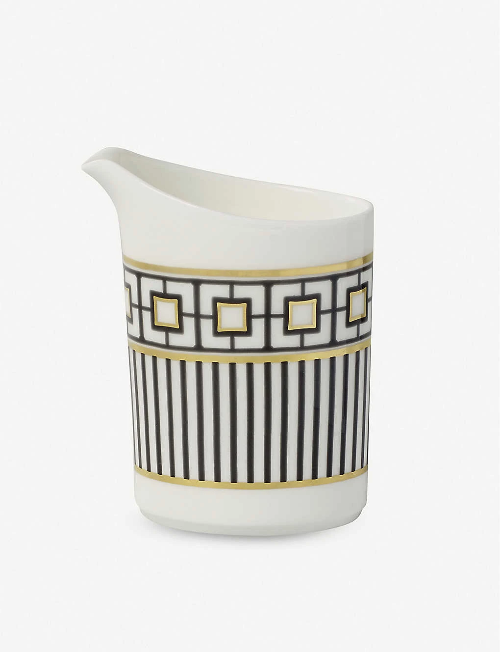 Geometric print in black, gold rim, Inglaze Gold technology, holds 220ml